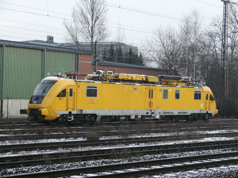 Bahndienstfahrzeug zur Oberleitungsrevision: Triebwagen der Baureihe 711 (711 118-0) am 06.03.2006 in Datteln (Ruhrgebiet).