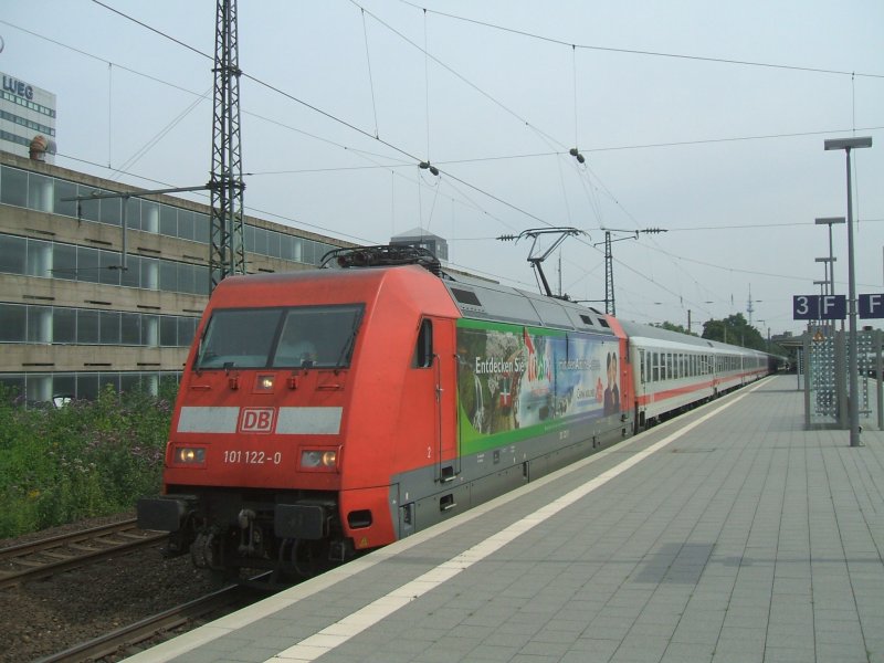 BR 101 122-0 "China Airlines" mit IC 2113 nach Stuttgart fährt um 11.48 Uhr( 19.07.2007) auf Gleis 3 aus dem Bochumer Hbf.