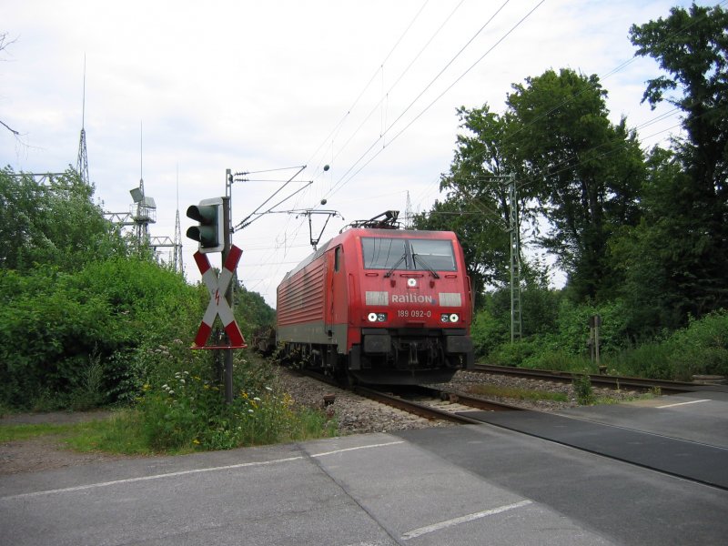 BR 189 092-0 mit leeren Niederbordwagen 19.07.07