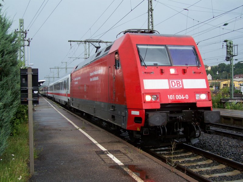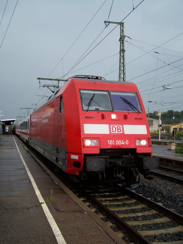 Br.101 101-4 stand am 20.Juli 2007 mit einem IC von Kalrsruhe Hbf nach Nürnberg Hbf im Bahnhof Aalen.