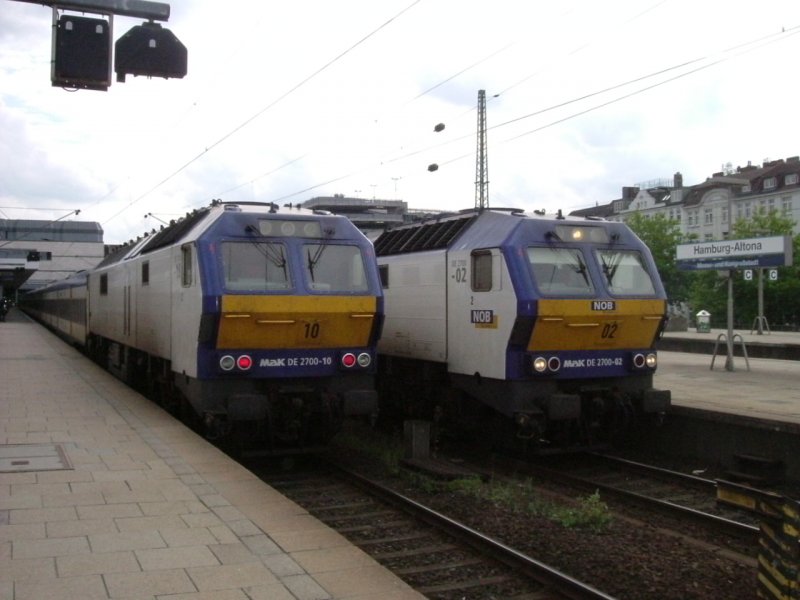 Am 13.08.2006 steht 218 184 mit einer Schwester in Westerland/Sylt mit einem Autozug - SyltShuttle.