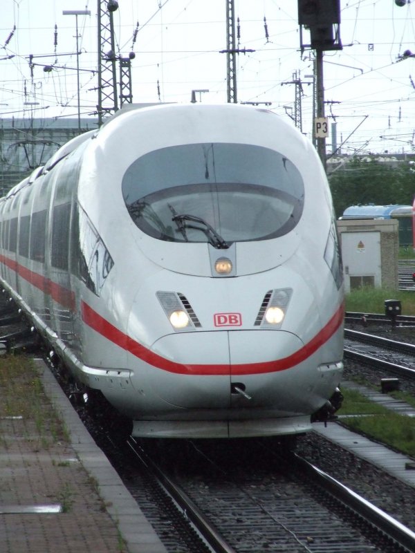 Ein ICE 3 fährt aus Richtung Offenburg in den Basel Badischen Bahnhof ein. (03.07.2007)