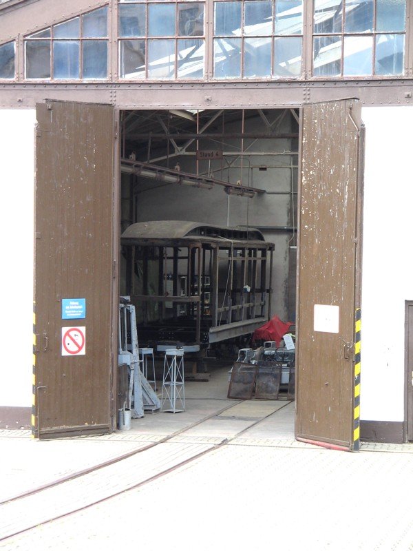Im Straßenbahnmuseum Chemnitz Kappel wird gerade ein alter Straßenbahntriebwagen aufgebaut, 19.07.07