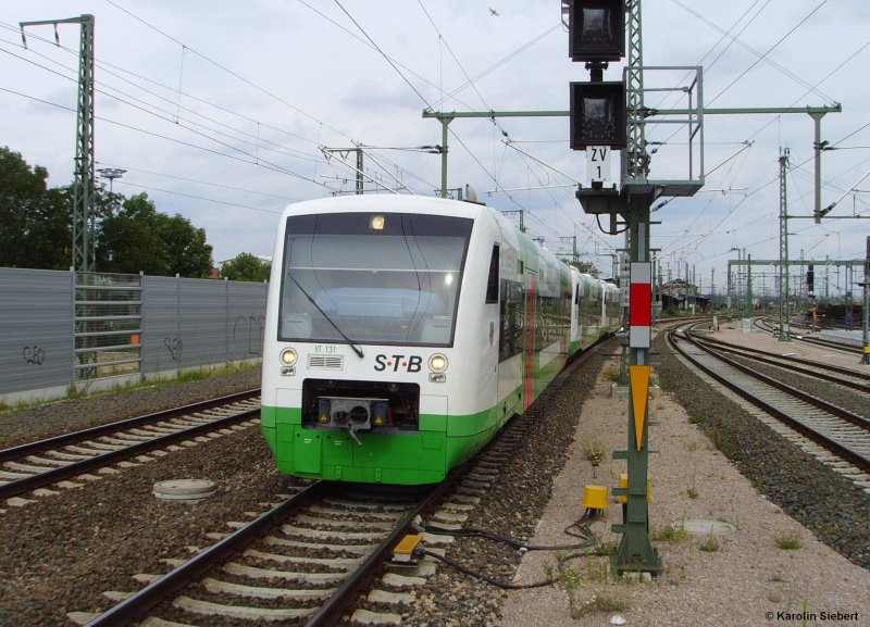 STB VT 131 bei der Einfahrt in den neu gestalteten Erfurter Hauptbahnhof am 11.07.2007