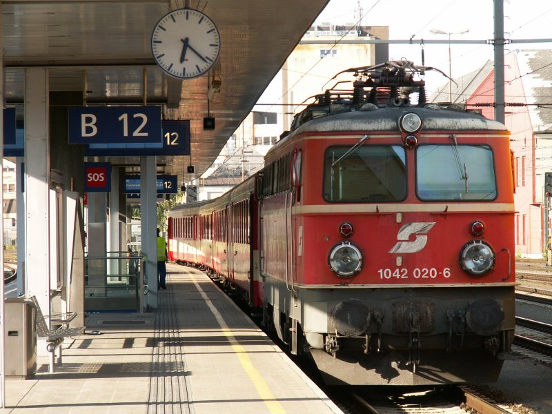 1042 020 mit Schlierengarnitur am 13.7.2007 in Linz Hbf zur Abfahrt als Regionalzug nach Kirchdorf bereitgestellt