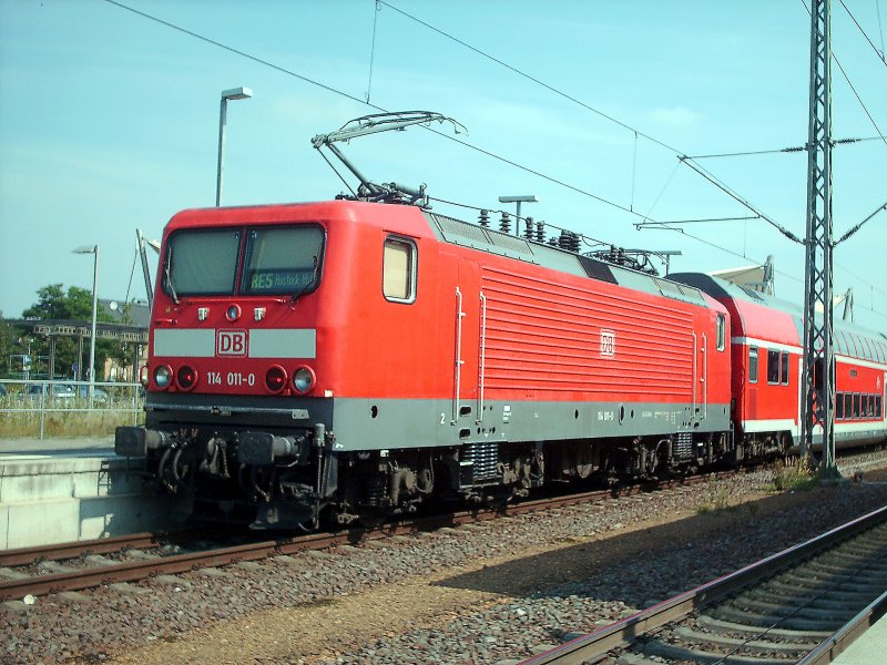 114 011-0 zog den RE 33103 nach Lutherstadt Wittenberg über Bln. Südkreuz, Thyrow, Jüterbog und Zahna.(Endbahnhof LWB am 21.07.2007)