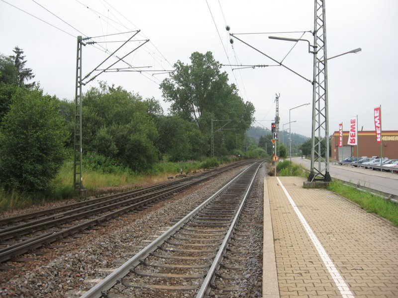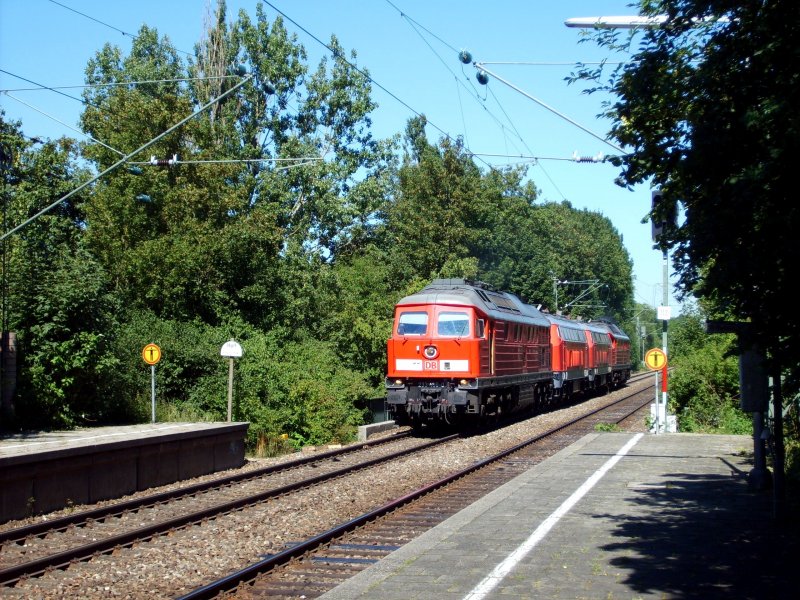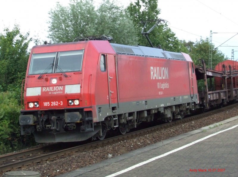 185 262, schon mit dem neuesten Logo der DB Railion durchfährt den S-Bahnhalt Tamm (Württ.) am 10.07.2007