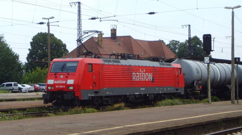 189 088 mit Kesselwagen bei einer Durchfahrt in Großkorbetha am 20.07.2007