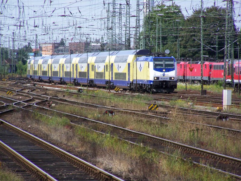 21.07.07, ME 146-04 kommt grade aus Hamburg und fährt in dem Bremer-Hbf ein.