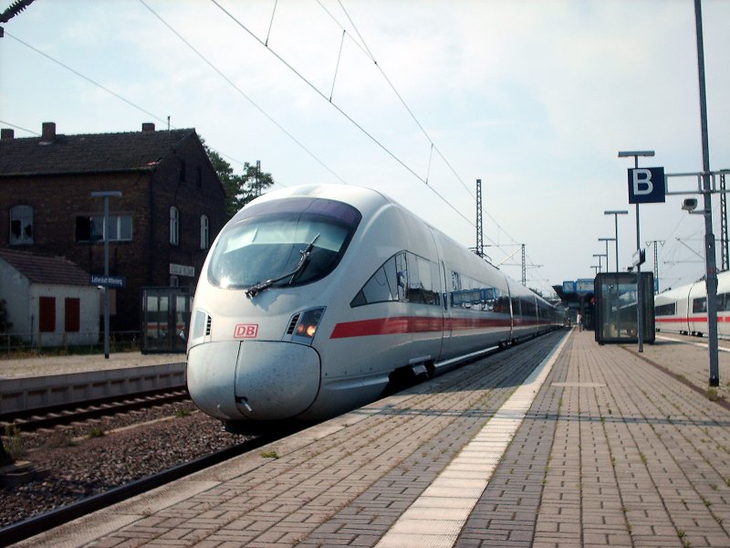 411 531-7 als ICE 1612 von München Hbf nach Hamburg Altona über Leipzig, Wittenberg, Bln. Hauptbahnhof(tief), Bln. Spandau und Hamburg Hauptbahnhof.(Luth. Wittenberg am 21.07.2007)