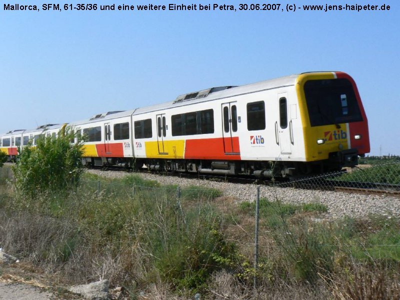Auf dem Weg von Manacor nach Palma im Streckenabschnitt kurz vor Petra. Das Bild entstand in etwa auf der Höhe, wo der Neubauabschnitt um Petra herum vom alten Streckenverlauf durch die Gemeinde abzweigt. Foto: 30.06.2007