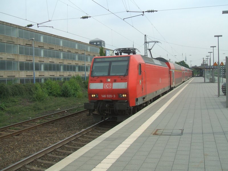 BR 146 020-3 mit RE 6 Minden-Düsseldorf bei der Ausfahrt aus