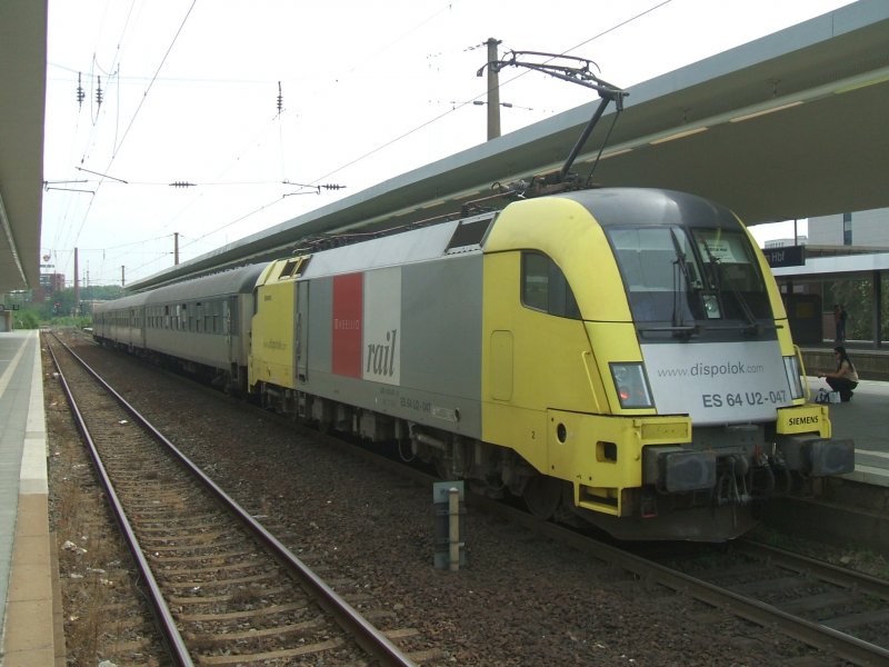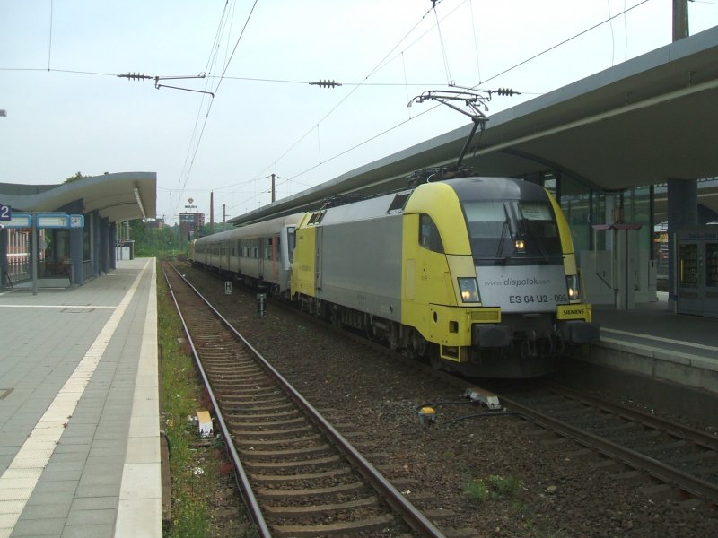 Die Siemens Dispolok ES64U2-012 im Bahnhof Bad Hersfeld müsste auch mal wieder gewaschen werden