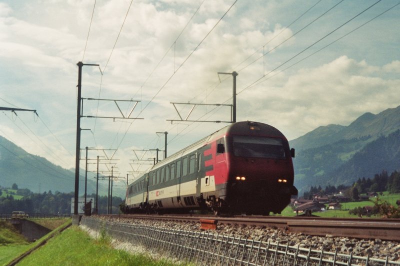 Ein IR Brig -Romanshorn fährt Steuerwagen voraus in Richtung Spiez.Bei Wengi im Oktober 2006.