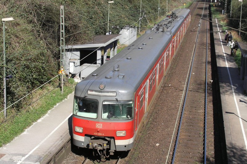 Elektrotriebwagen ET 420 886-4 der Linie S9 macht am 02.04.2005 in Bottrop-Boy kurzen Zwischenhalt, um dann mit Fahrtziel Wuppertal Hauptbahnhof weiterzufahren.