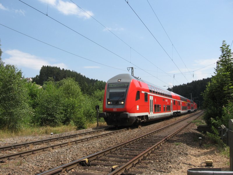 VX 83266, hier mit VT 08 u. 06, von Hof Hbf nach Berlin Zoologischer Garten. Hier wurde er wegen Bauarbeiten umgeleitet über Falkenberg/Elster. Aufgenommen am 21.07.07 in der Nähe von Falkenberg/E.