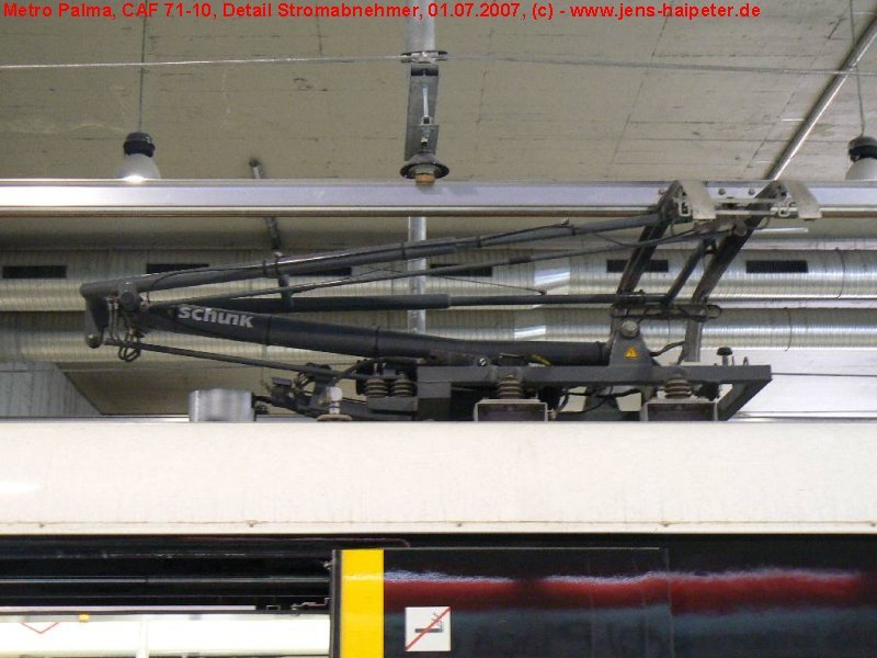 Metro Palma, Detail Stromabnehmer CAF 71 und feste Fahrleitung. Foto: 01.07.2007