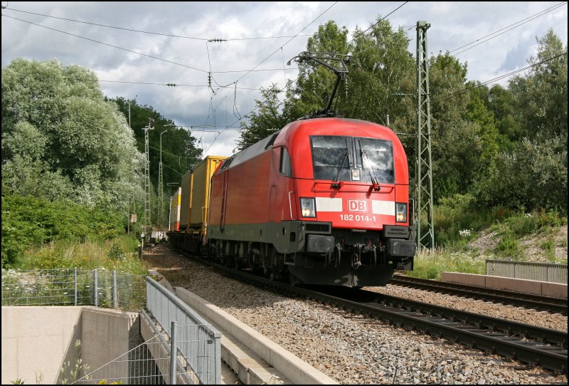 Nur drei Minuten nach der 139 552 rollt die 9180 6 182 014-1-D-DB mit ihrem Kombizug in den Bahnhof Brannenburg ein. Kurz vor dem Ausfahrtsignal bekam der Zug Grün und konnte seine Fahrt in Richtung Brenner/Brennero fortsetzen. (27.06.07)