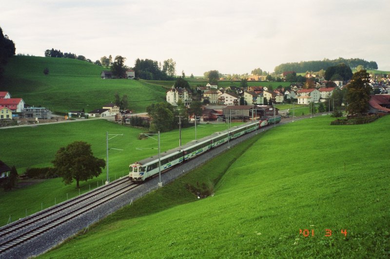 ABDeh 2/4 23 mit einem langen Ausflüglerzug in Heiden. (Archiv 05-77)