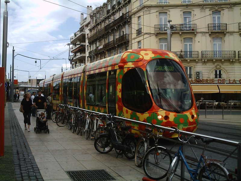 Wagen 2003 der Linie 1 (Eröffnung 2002) in Montpellier. 02.07.2007