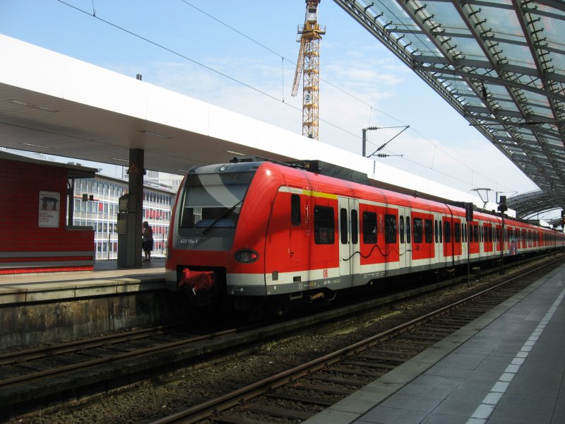 423 754-1, wurde am 11. Juni 2007, unterwegs auf der Linie S 11 nach Bergisch-Gladbach, am Kölner Hbf gesehen.