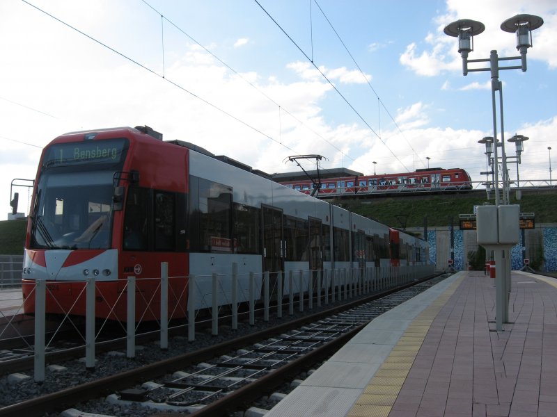 Am 17.07.2007 wurde TW 4524, der auf der Linie 1 unterwegs war, in der Haltestelle "Weiden West" fotografiert. Im Hintergrund ist noch ein Zug der Baureihe 423 zu erkennen. Die Fußballweltmeisterschaft bot den Anlass, diesen Wunsch zu finanzieren. Kein Meisterfoto, weiß ich!!!