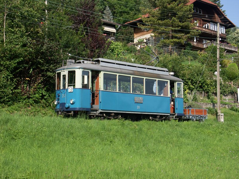 Ce 2/3 28 ex TL et wagonnet ex GFM à Blonay 22.07.2007