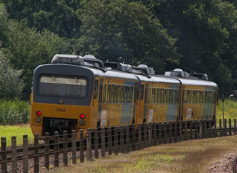 Der Zug Richtung Roermond verlässt den Bahnhof Venlo. Dieser Nachschuss zeigt den Wagen 3103. Das Foto stammt vom 25.07.2007