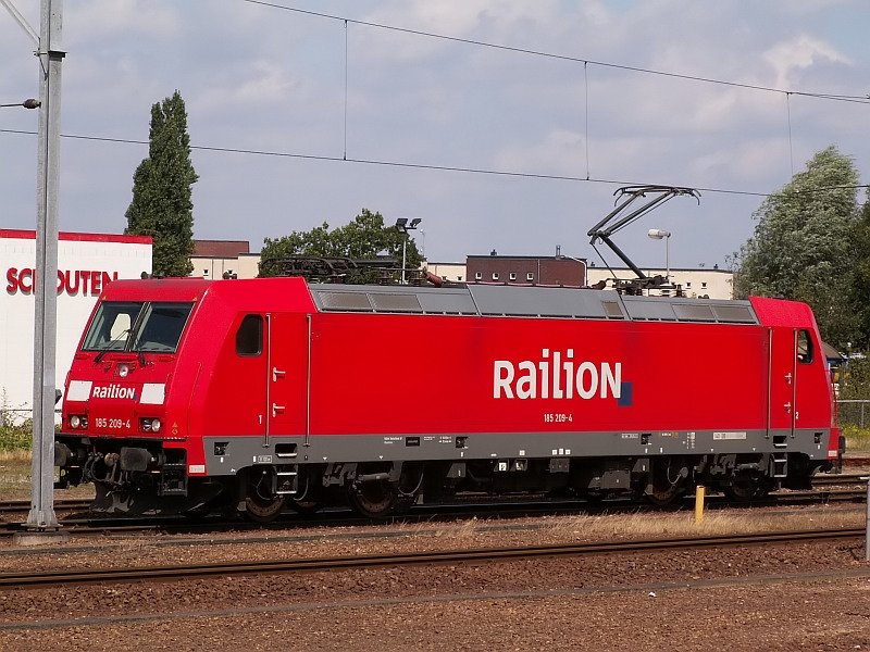 Die Lokomotive 185 209-4 steht hier im Bahnhof Venlo. Die Standzeit dort war aber nur wenige Minuten lang, dann wurde sie vor einen Güterzug gespannt. Das Foto stammt vom 25.07.2007