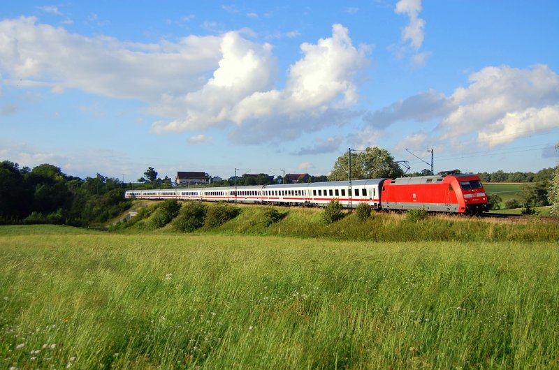 Eine unbekannte 101er zieht am 24.07.07 den IC 2062 von Nürnberg HBF nach Karlsruhe HBF, hier in Höhe Aalen-Oberalfingen aufgenommen.