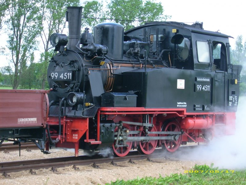 99 4511 am Wasserkran in Mesendorf am 18.05.2007 während ihres Einsatzes beim Pollo.