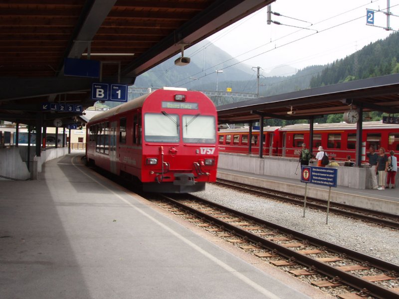 Gepäckwagen hinter dem Steuerwagen 1756 in Klosters-Platz.