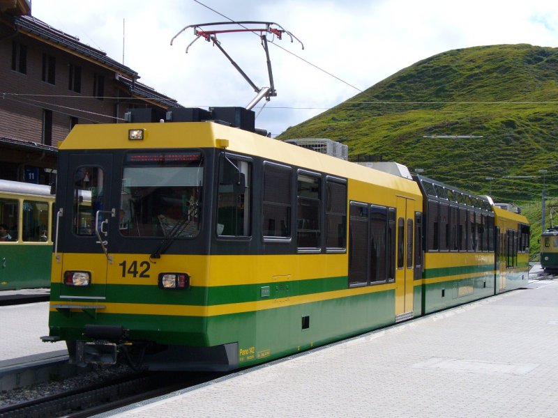 WAB - Panorama Zahnrad Triebwagen ( PANO ) Beh 4/8 142 im Bahnhof der Kleinen Scheidegg am 16.06.2007