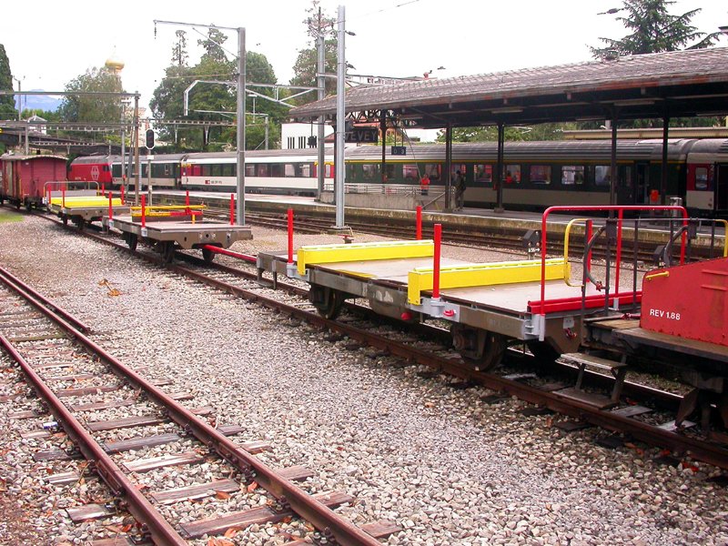 X 61 62 63 Wagons pour le transports de rails ex wagons à ciment MOB garé à vevey 24.07.2007