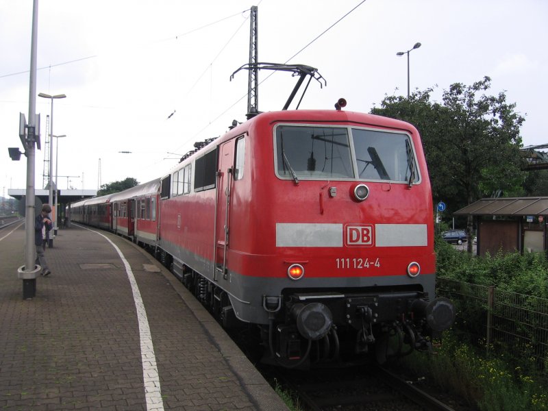 Am 23.06.2007 legt sich 111 124 mit RB 48 nach Bonn Mehlem bei Leichlingen in die Kurve.