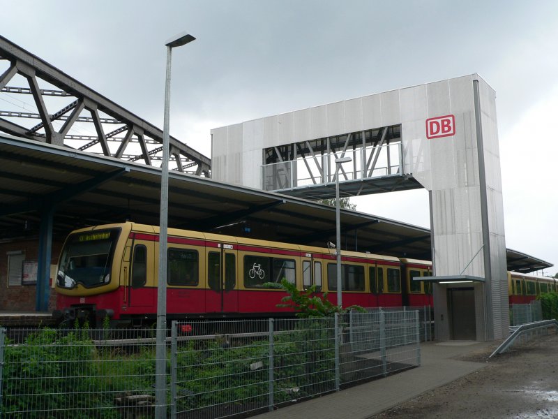 People Mover in Betriebsbahnhof Rummelsburg. Die schwierige Lage dieses Bahnhofes ließ herkömmliche Fahrstuhlinstallationen als zu schwierig erscheinen. 23.6.2007