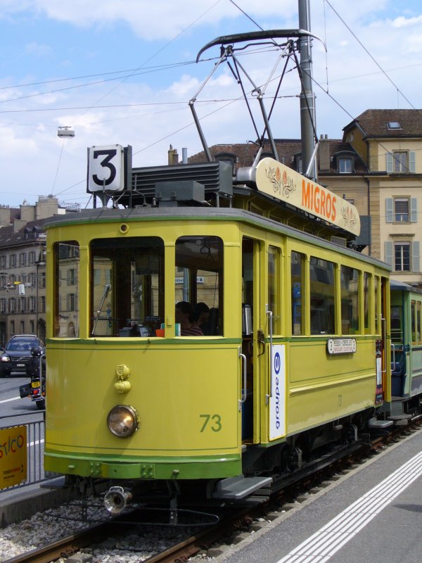 TN - Triebwagen Be 2/2 73 am Endbahnhof in Neuchâtel bei einer Publikumsfahrt am 10.06.2007
