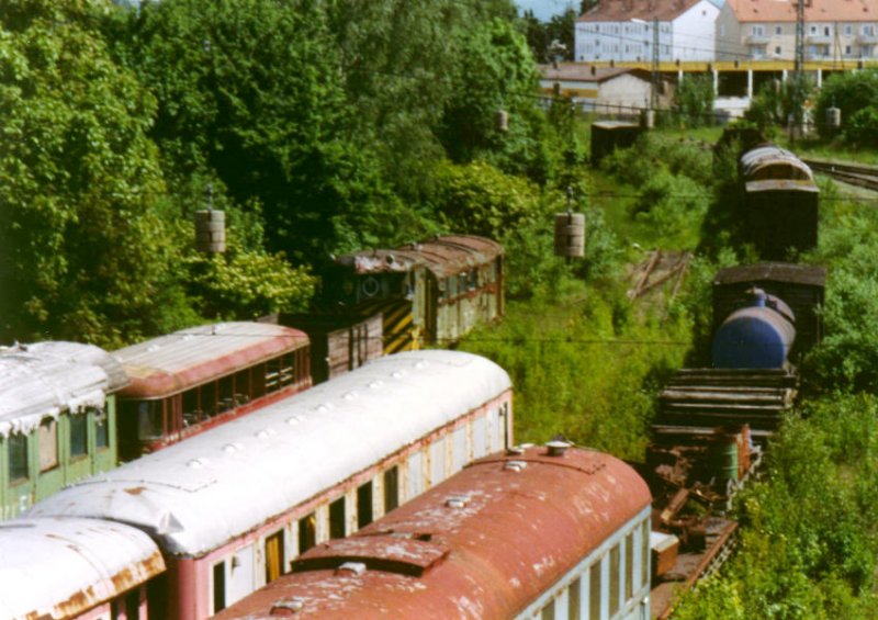 Vom Bahnsteig 1 aus Westseite sieht man die ehemalige Güterhalle. Wie man sehen kann ziemlich verwildert. Die Gleise sind heute nicht mehr vorhanden. Wurde eine Kurze Zeit von der Spedition BTK Logistik genutzt aber nur nach vorn raus. Güterhalle steht heute leer. Aufgenommen am 25.05.07.