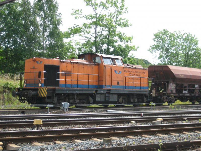 Neben dem "Rasenden Roland" bedient auch die "Ola" (Ostland Verkehr GmbH), hier der VT 0008, den DB Bahnhof Lauterbach Mole. 10. Juni 2007