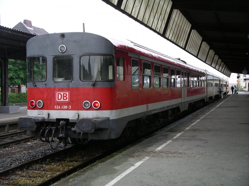 624-638 ist der Schlußwagen der VT 624-Einheit, welche als RB 29070 von Enschede - Gronau über Coesfeld nach Lünen -Dortmund fährt.