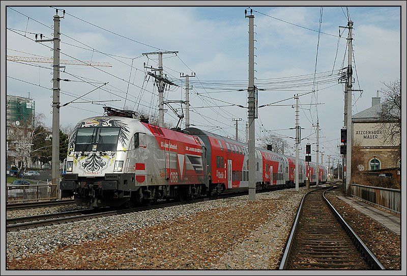 Wie schon am 17.3.2007 war der Bundesheertaurus 1116 246 auch am 18.3.2007 an den Durchbindern zu sehen. Die Aufnahme aus Wien Atzgersdorf-Mauer zeigt den Zug als R 2215 von Breclav nach Payerbach-Reichenau.