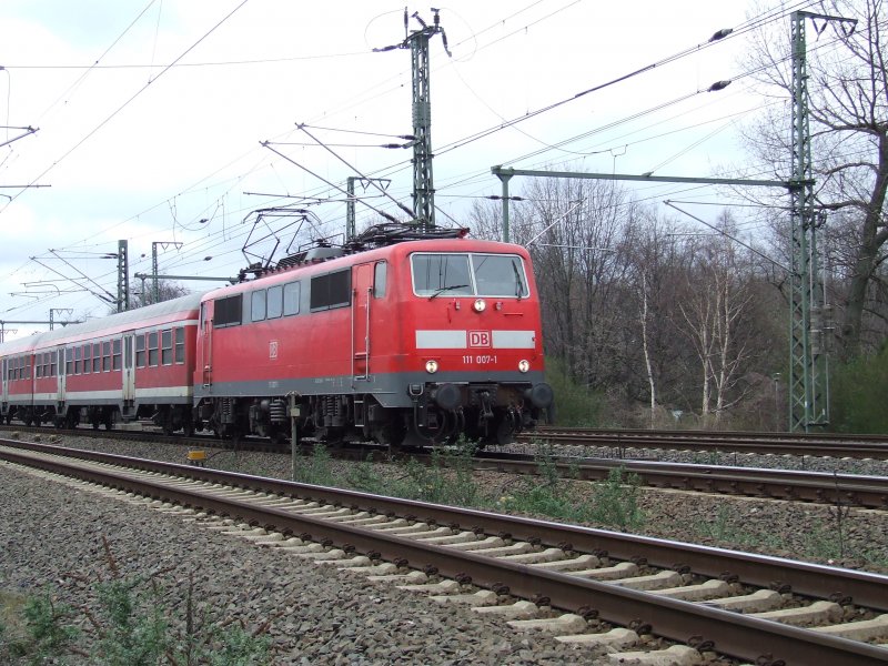 111 007-1 mit RB35 Der Weseler, Emmerich-Duisburg bei Oberhausen. 23.3.07