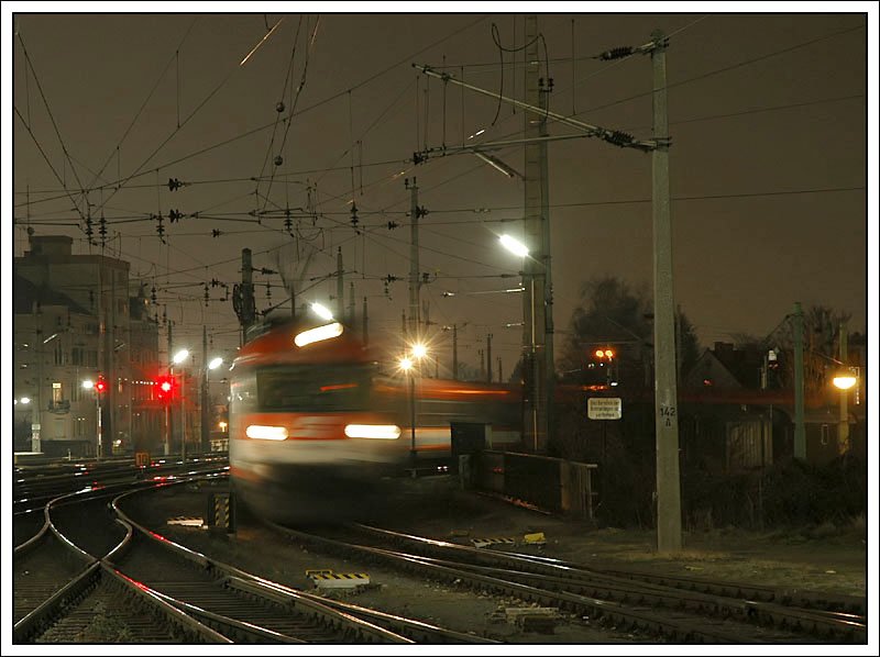 Eigentlich wollte ich diesen Triebwagen der Reihe 4010 bei Stillstand fotografieren, aber während der Belichtung setzte er sich Richtung Traktion in Bewegung. Grazer Hauptbahnhof am 22.2.2007