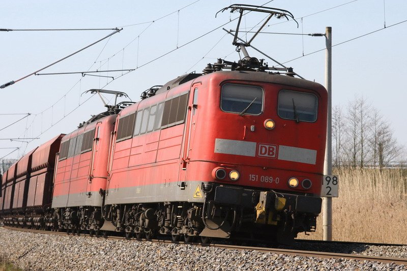 151 089 und 151... im Doppelpack vor Güterzug. 03/2007