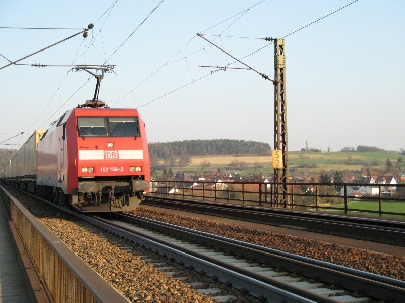 BR 152 158-2 mit einem Güterzug auf der Donaubrücke bei Regensburg-Prüfening