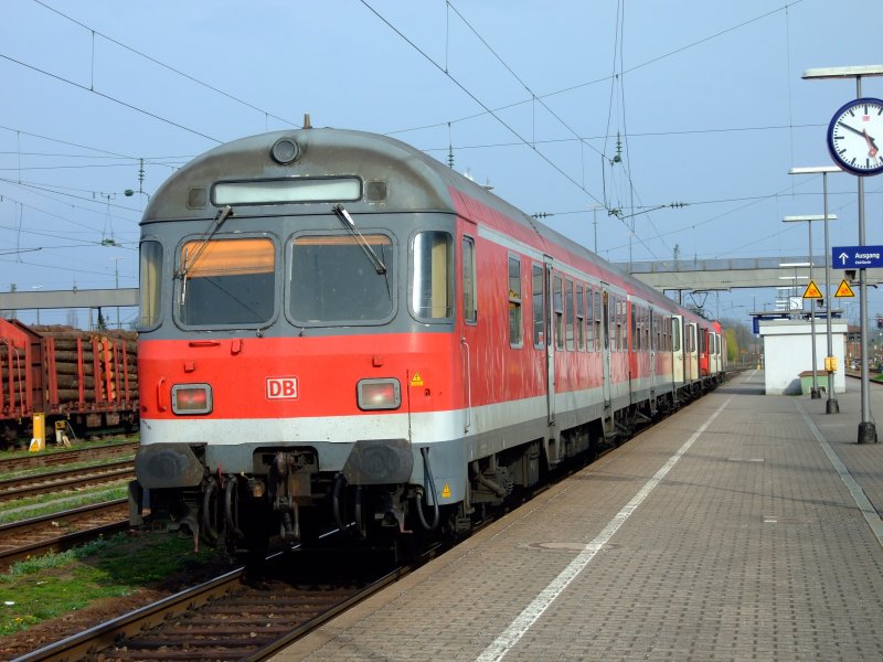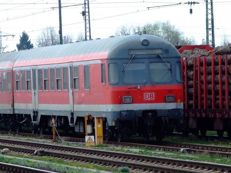 Man sieht nur sehr selten Karlsruher Steuerwagen, bei denen der Zugzielanzeiger noch funktioniert. 31.03.2007 in Plattling.