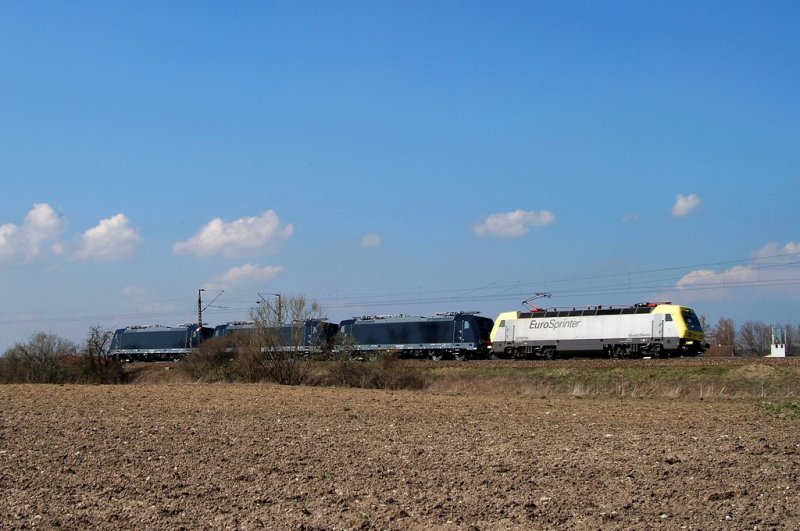 ES 64 P - 001 (Eurosprinter) mit 3 x E 484 (für Italien) bei Hattenhofen (02.04.2007)