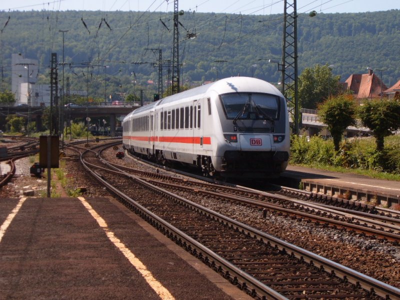 Ein Bpmbdzf-Steuerwagen des IC 2160 von Nürnberg HBF nach Karlsruhe HBF am 19.05.07 bei der Ausfahrt aus dem Aalener Bahnhof.