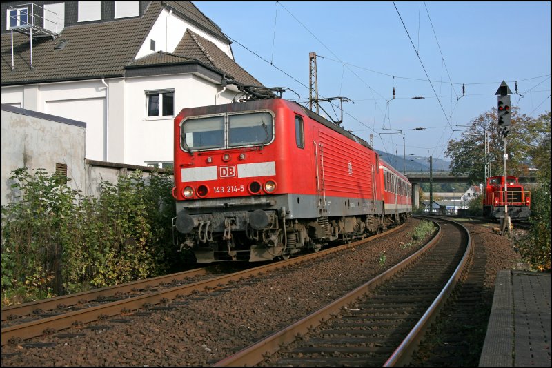 143 214 ist mit der RB91 (RB 39172) "RUHR-SIEG-BAHN" in Plettenberg eingefahren. (08.10.07)
