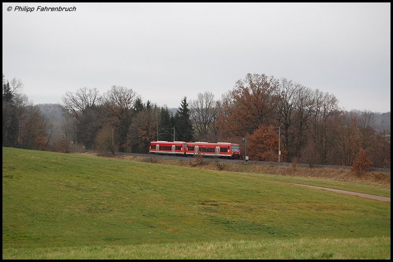 628 335-9 fährt am 24.11.07 als RE 22524 von Ulm Hbf nach Crailsheim, aufgenommen in Schwabsberg.